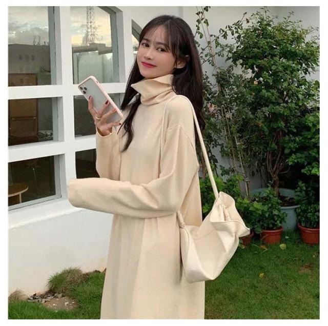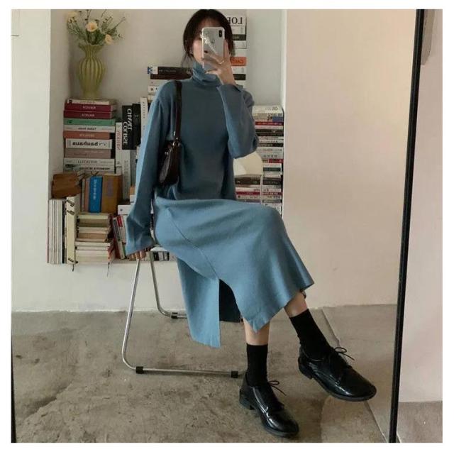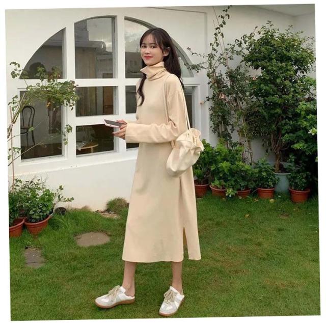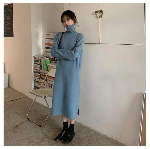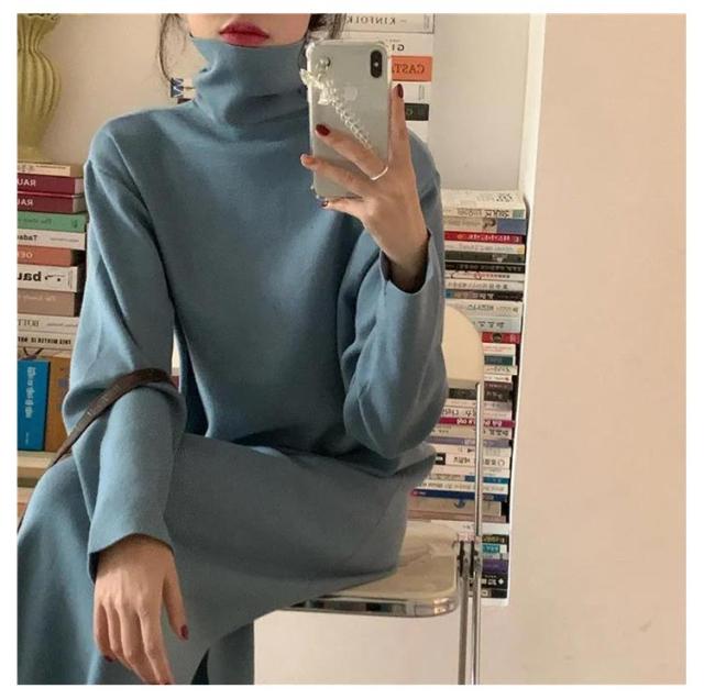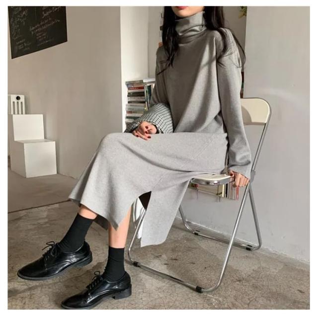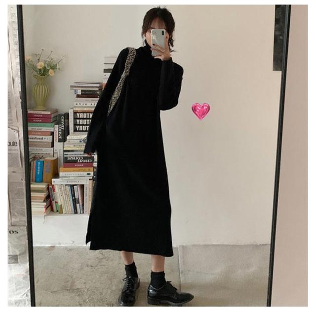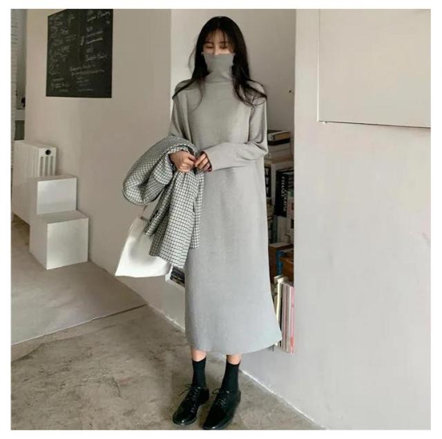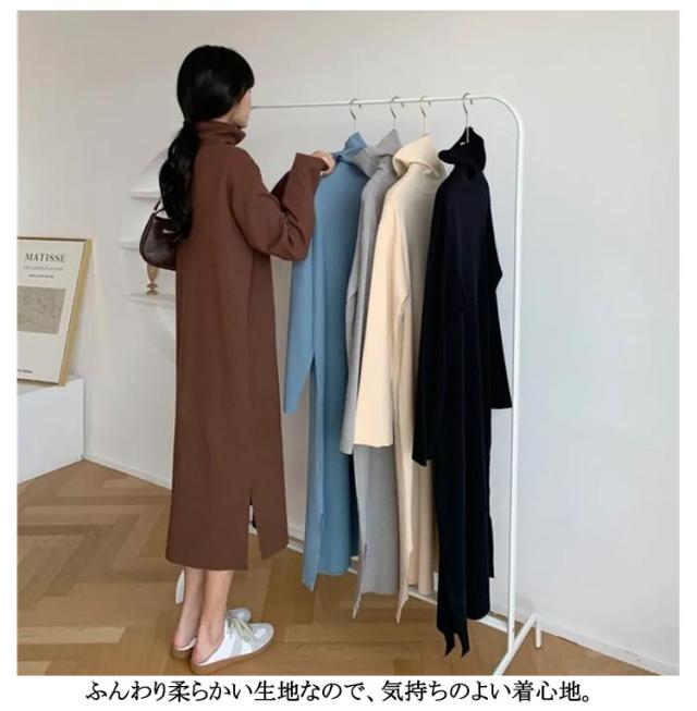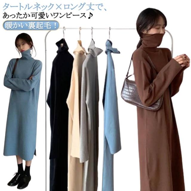 ワンピース 洗える 長袖 レディース ワンピース ロング丈 ストレッチ タートルネック スウェット ボア 体型隠し シャギー フリース ワンピ ハイネック 膝下 ひざ下 ゆったり 無地 ロングワンピース 体型カバー 大きいサイズ 暖かい 秋冬 送料無料