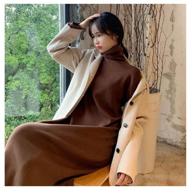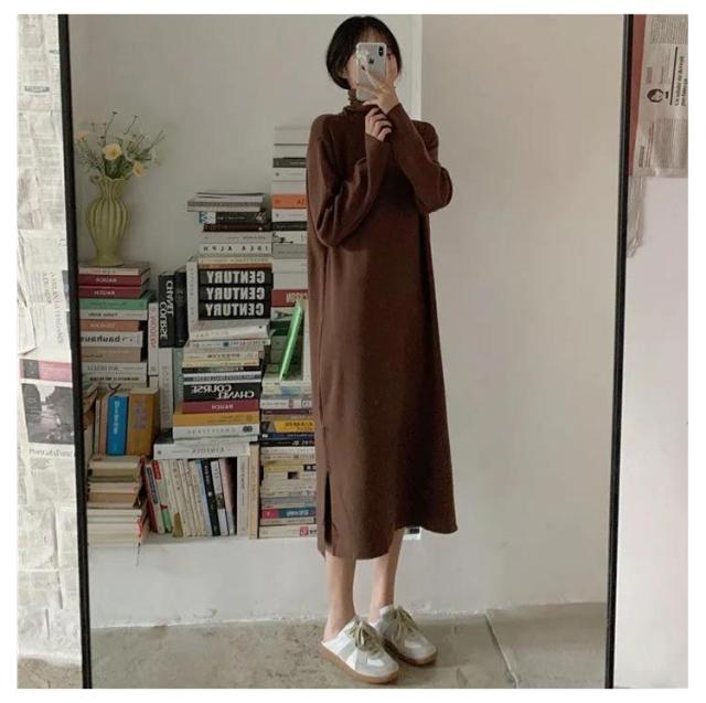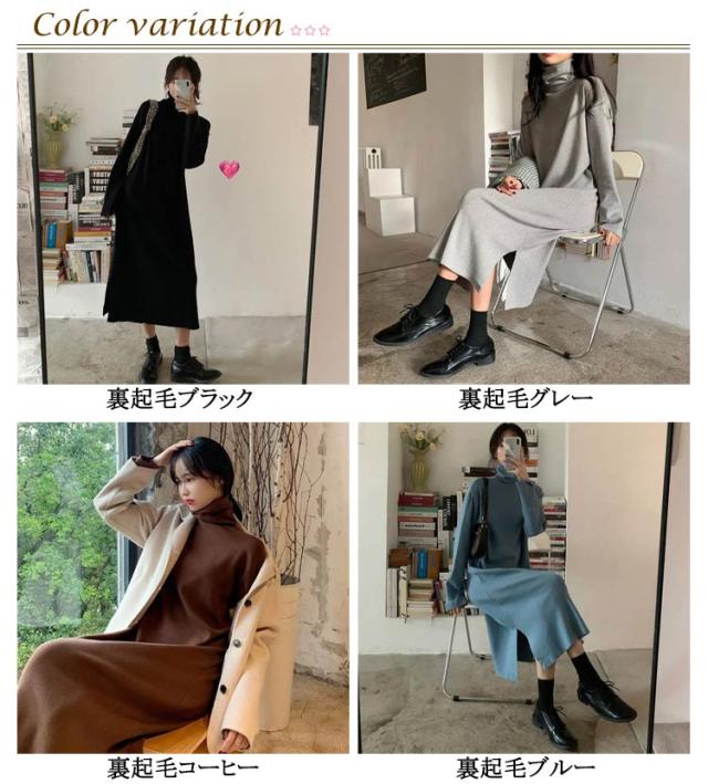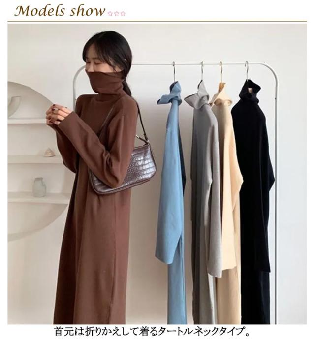 | 暖かい裏起毛! タートルネック×ロング丈で、あったか可愛いワンピース♪ 首元は折りかえして着るタートルネックタイプ。 ふんわり柔らかい生地なので、気持ちのよい着心地。 | |