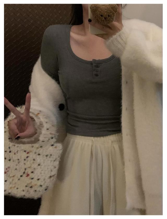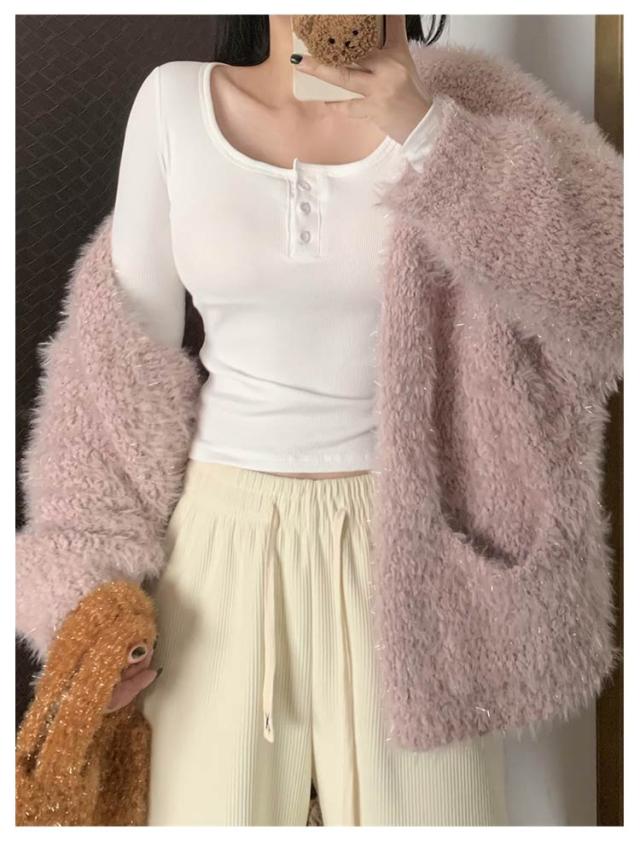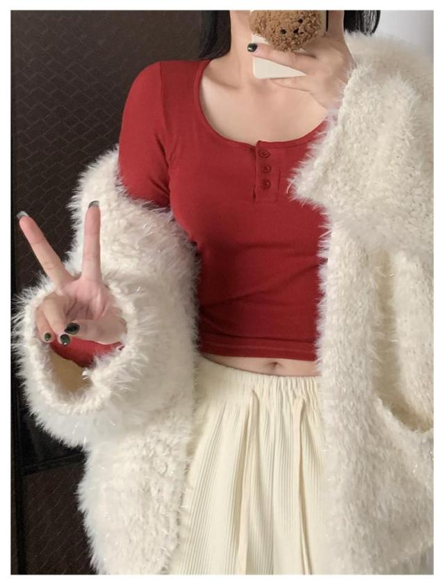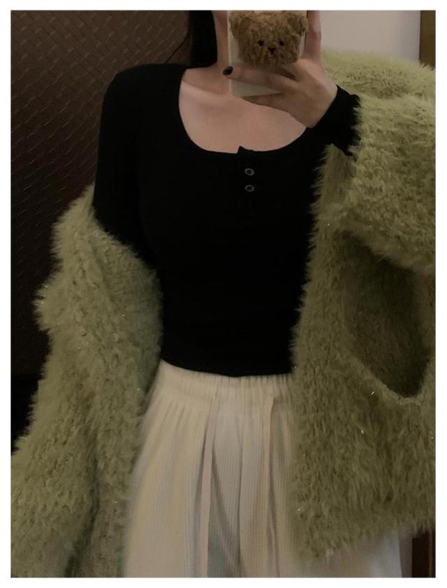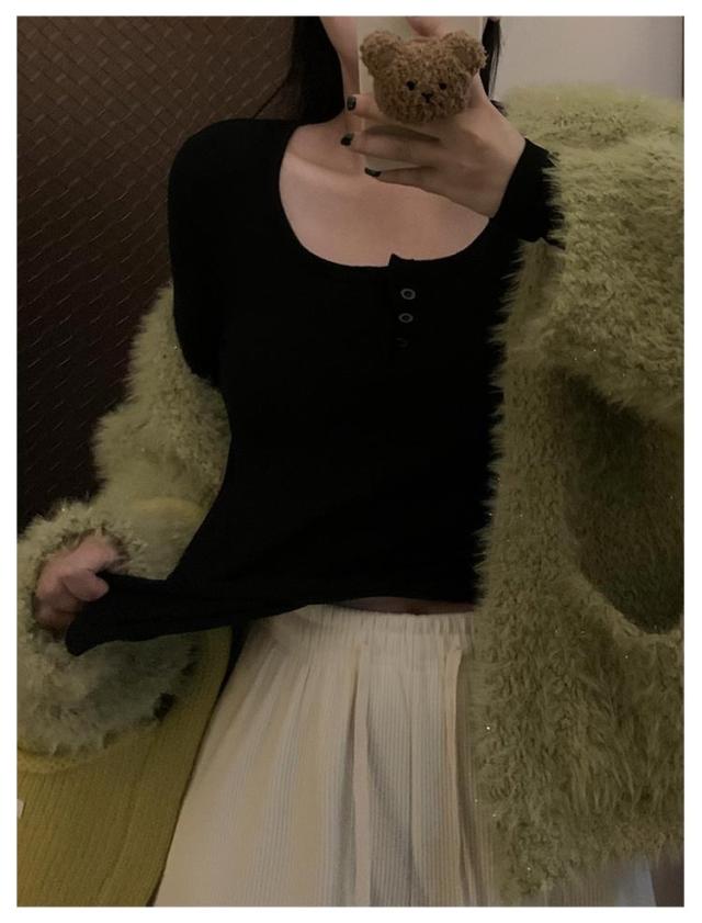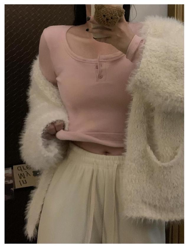カップ付き Tシャツ ランドネック ストレッチ 長袖 前ボタン 裏起毛 ルームウェア 暖か ノンワイヤー 肌着 uネック ブラトップ 部屋着 トップス 無地 リブ レディース 下着 カップ付き ナイトウェア ジムウェア 冷え対策 保温 秋 冬