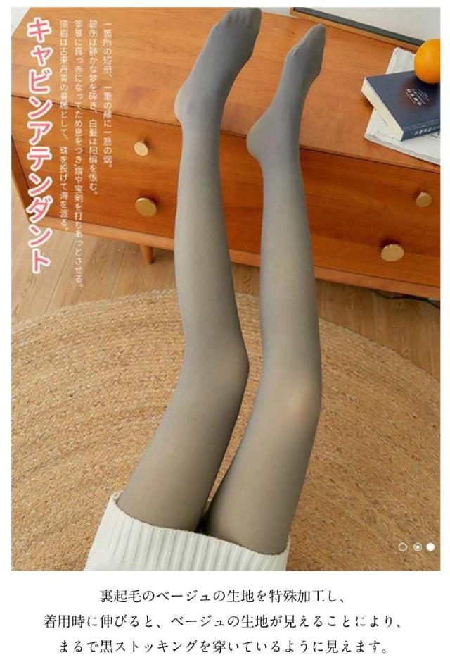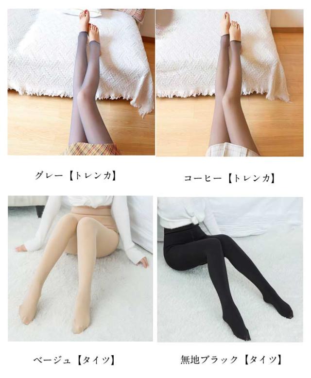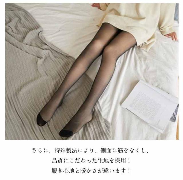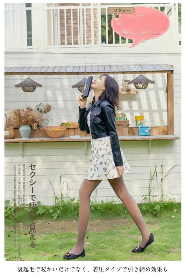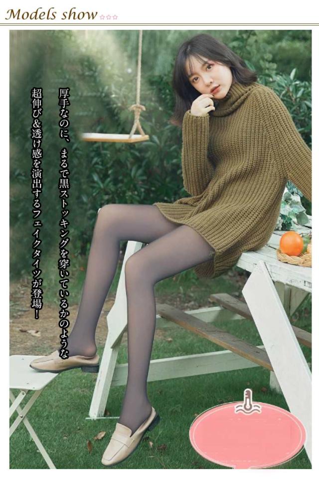 | 3種類の厚さ選べる 春、秋、冬に着用できます 厚手なのに、まるで黒ストッキングを穿いているかのような超伸び&透け感を演出するフェイクタイツが登場! 裏起毛で暖かいだけでなく、着圧タイプで引き締め効果も 裏起毛のベージュの生地を特殊加工し、 着用時に伸びると、ベージュの生地が見えることにより、まるで黒ストッキングを穿いているように見えます。 さらに、特殊製法により、側面に筋をなくし、品質にこだわった生地を採用! 履き心地と暖かさが違います! | |