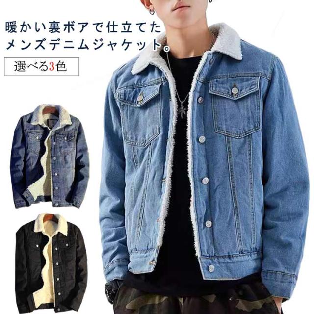 デニム 細身 ボアジャケット 厚手 裏起毛 Gジャン ショート丈 ジャケット デニムボアジャケット アウター デニムジャケット 裏ボア メンズ 冬服 暖かい 折り襟 30代 20代