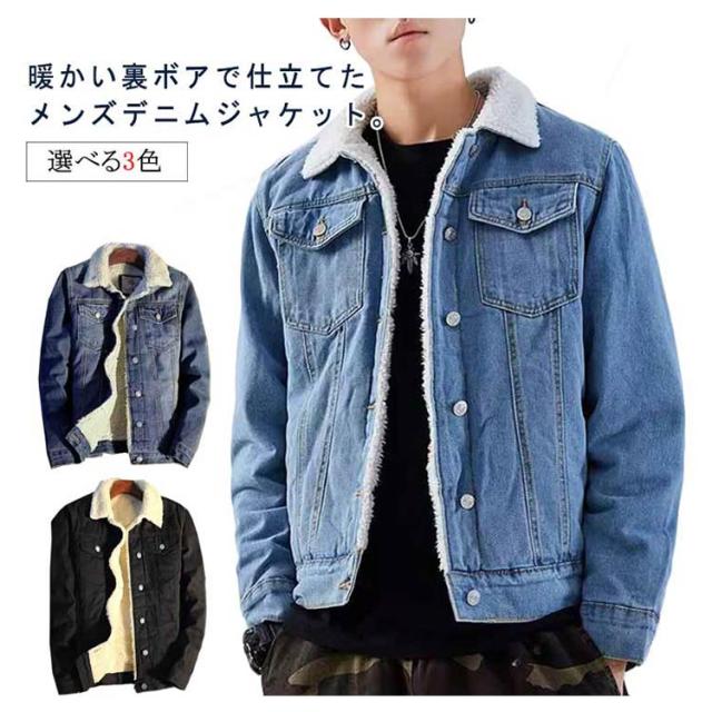 ジャケット デニムボアジャケット デニムジャケット 裏起毛 Gジャン ショート丈 細身 メンズ デニム アウター 厚手 裏ボア ボアジャケット 冬服 暖かい 折り襟 30代 20代