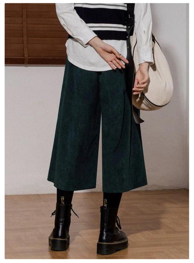 きれいめ コーデュロイ メンズ ガウチョ コーデュロイ レディース ボトムス ズボン ワイドパンツ パンツ 7分丈パンツ コーデュロイ ウエストゴム ウエストゴム カジュアル リラックス ワイド 無地 ゆったり 大人 かわいい