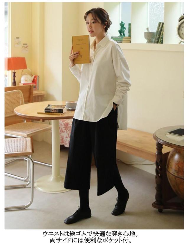 | あたたかみのあるコーデュロイ風の素材がこれからの季節にぴったり♪ すっきりとしたワイドシルエットで縦のラインを強調し美ライン見せ! コーデュロイ生地ながらも軽量で柔らかく、リラックス感のある穿き心地。 ウエストは総ゴムで快適な穿き心地。両サイドには便利なポケット付。 すっきりめのシルエットはトップスのインもアウトももたつかず着回し力抜群。 | |