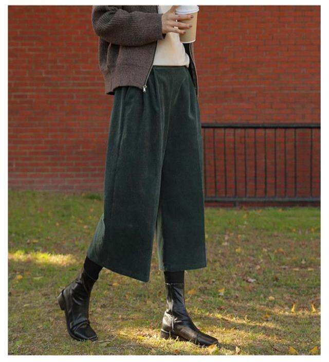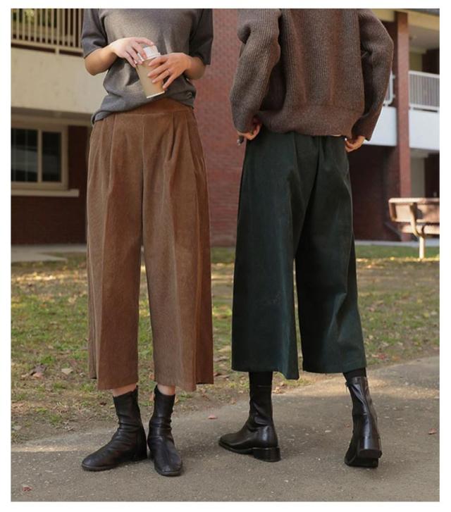 ガウチョパンツ コーデュロイ パンツ ウェストゴム ワイド ワイドパンツ 7分丈 大人 きれいめ コーデュロイパンツ ポケット付き 七分丈 ロングパンツ シンプル クロップトパンツ 秋冬 スカーチョ オーバーサイズ あったか コーデュロイ 無地 体型カバー