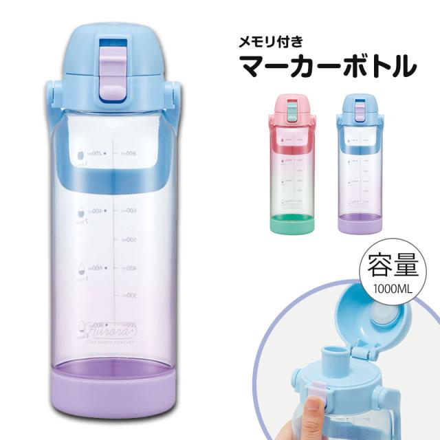 水筒 目盛り付き 1リットル タイムマーカー付き ウォーターボトル 直飲み 持ち手付き ハンドル付き 広口 大容量 スポーツ アウトドア ドリンクマーカーボトル グラデーション ピンク グリーン ブルー パープル 1000ml PDMK10