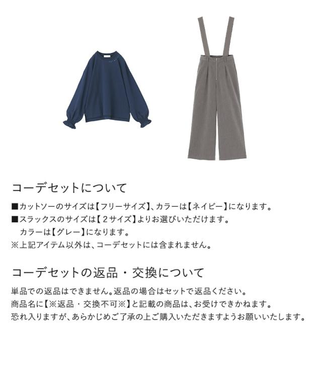 【送料無料】『サスペンダー付きスラックス×キャンディスリーブロゴカットソーコーデ2点SET』【メール便不可】【20】[2点コーデセット 2024 レディース パンツ ボトムス ワイド スラックス トップス カットソー]