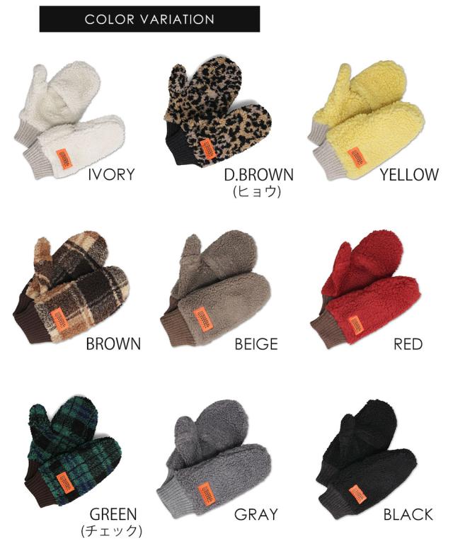 ユニバーサルオーバーオール 手袋 レディース ボア ミトン スマホ対応 指先フード付き グローブ UNIVERSALOVERALL ブランド 秋 冬 防寒 暖かい あったか アウトドア おしゃれ もこもこ ふわふわ クリスマス プレゼント 黒 白 赤 UO t1110