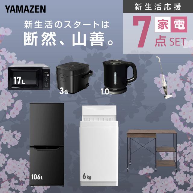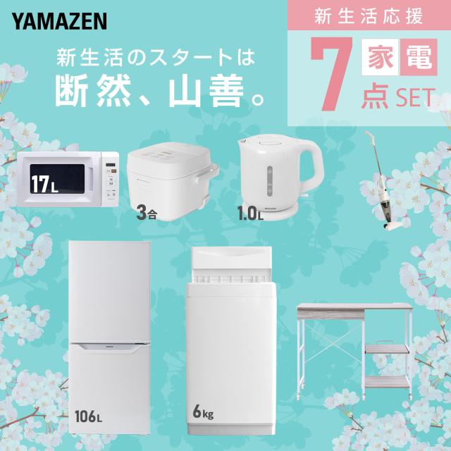 新生活家電セット 7点セット 一人暮らし (6kg洗濯機 106L冷蔵庫 電子レンジ 炊飯器 電気ケトル スティッククリーナー レンジラック) ひとり暮らし 単身赴任新 学生 入学 おすすめ 山善 YAMAZEN【送料無料】