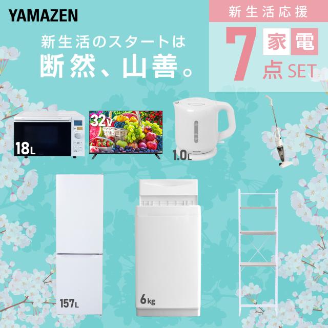 新生活家電セット 7点セット 一人暮らし (6kg洗濯機 157L冷蔵庫 オーブンレンジ 32型液晶テレビ 電気ケトル スティッククリーナー 家電収納ラック) ひとり暮らし 単身赴任新 学生 入学 おすすめ 山善 YAMAZEN【送料無料】