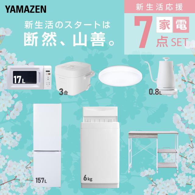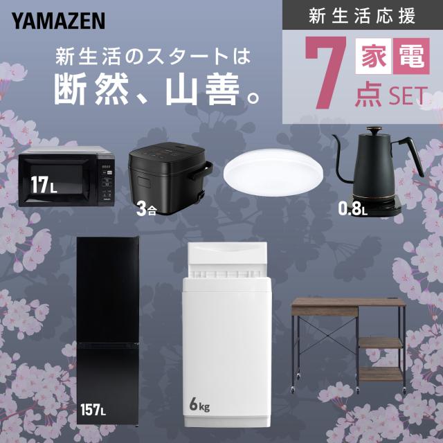 新生活家電セット 7点セット 一人暮らし (6kg洗濯機 157L冷蔵庫 電子レンジ 炊飯器 シーリングライト 温調ケトル レンジラック) ひとり暮らし 単身赴任新 学生 入学 おすすめ 山善 YAMAZEN【送料無料】