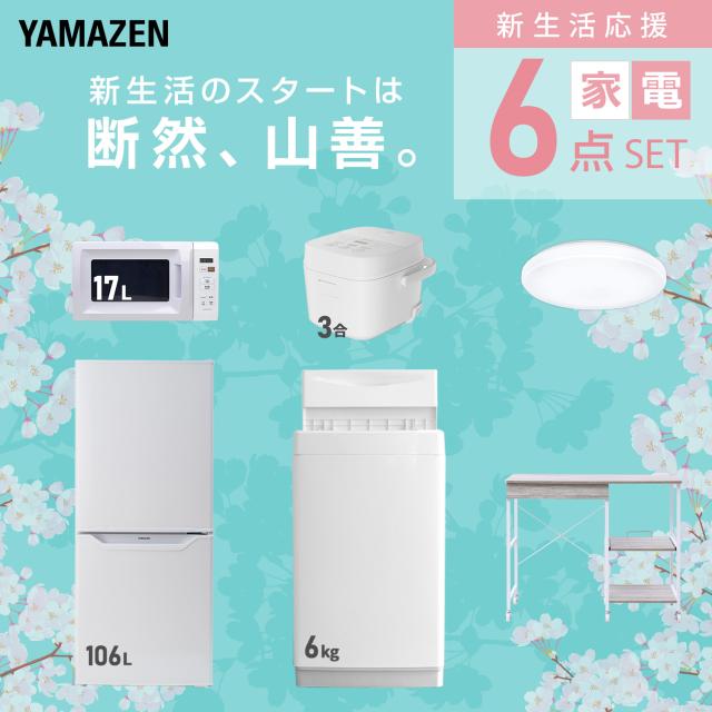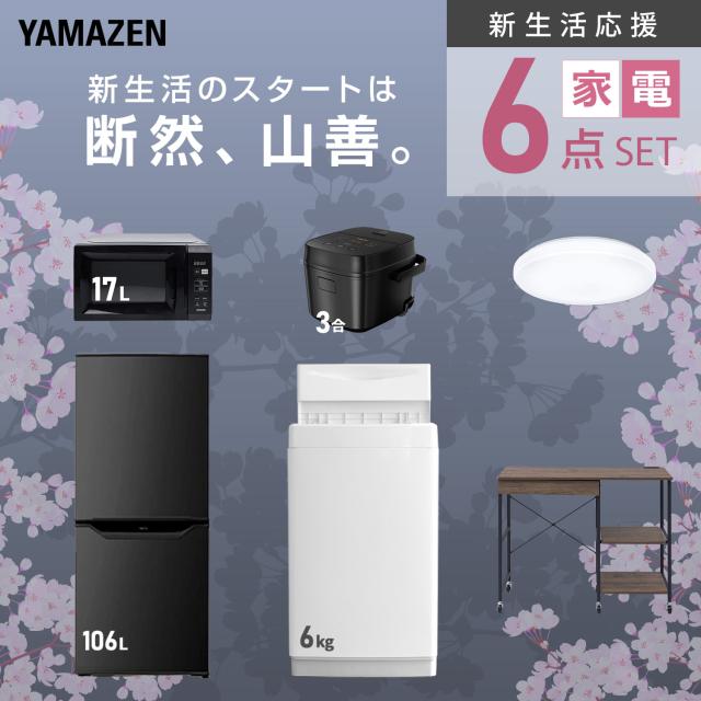新生活家電セット 6点セット 一人暮らし (6kg洗濯機 106L冷蔵庫 電子レンジ 炊飯器 シーリングライト レンジラック) ひとり暮らし 単身赴任新 学生 入学 おすすめ 山善 YAMAZEN【送料無料】