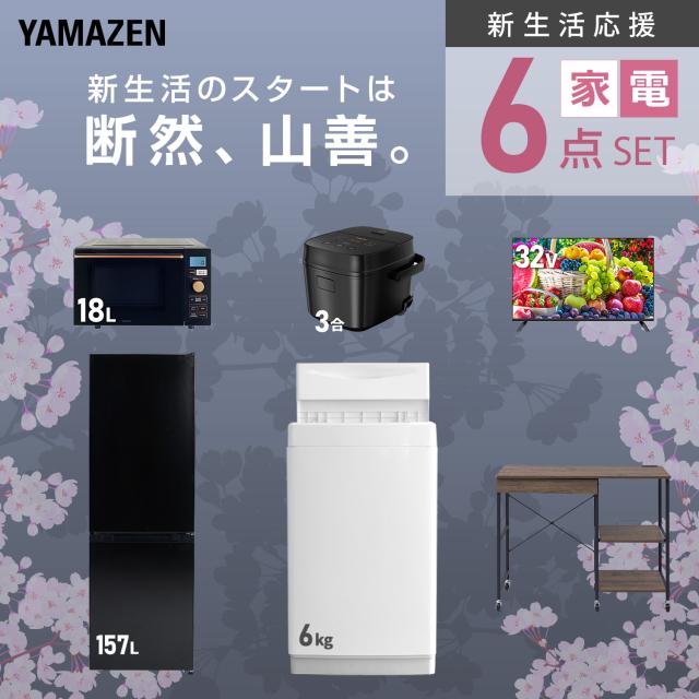 新生活家電セット 6点セット 一人暮らし (6kg洗濯機 157L冷蔵庫 オーブンレンジ 炊飯器 32型液晶テレビ レンジラック) ひとり暮らし 単身赴任新 学生 入学 おすすめ 山善 YAMAZEN【送料無料】