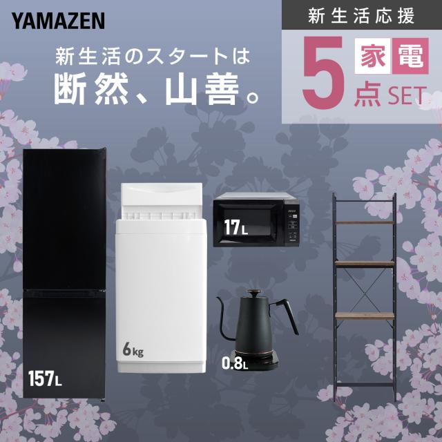 新生活家電セット 5点セット 一人暮らし (6kg洗濯機 157L冷蔵庫 電子レンジ 温調ケトル 家電収納ラック) ひとり暮らし 単身赴任新 学生 入学 おすすめ 山善 YAMAZEN【送料無料】