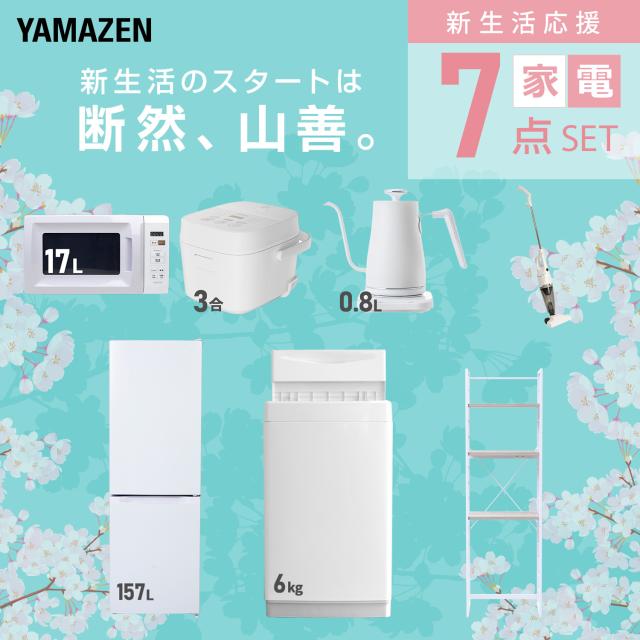 新生活家電セット 7点セット 一人暮らし (6kg洗濯機 157L冷蔵庫 電子レンジ 炊飯器 温調ケトル スティッククリーナー 家電収納ラック) ひとり暮らし 単身赴任新 学生 入学 おすすめ 山善 YAMAZEN【送料無料】