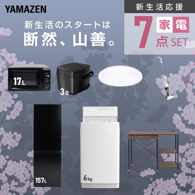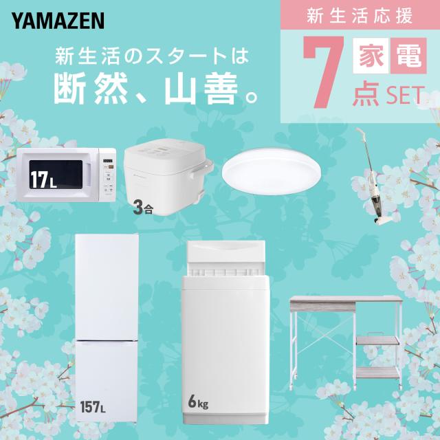 新生活家電セット 7点セット 一人暮らし (6kg洗濯機 157L冷蔵庫 電子レンジ 炊飯器 シーリングライト スティッククリーナー レンジラック) ひとり暮らし 単身赴任新 学生 入学 おすすめ 山善 YAMAZEN【送料無料】