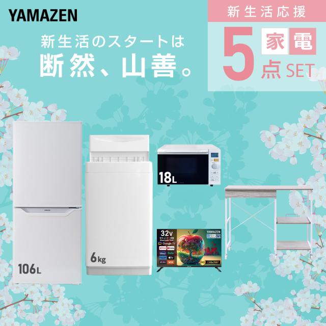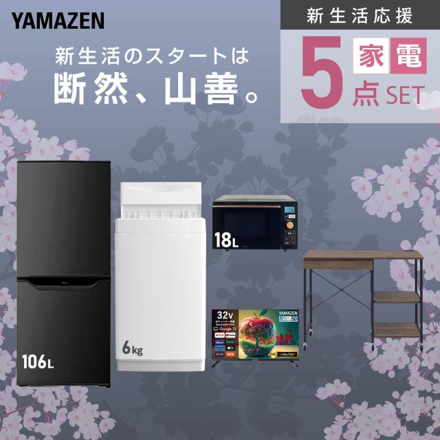 新生活家電セット 5点セット 一人暮らし (6kg洗濯機 106L冷蔵庫 オーブンレンジ スマートテレビ 32型 レンジラック) ひとり暮らし 単身赴任新 学生 入学 おすすめ 山善 YAMAZEN【送料無料】