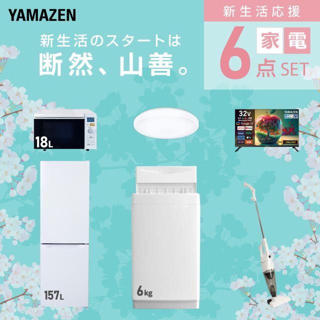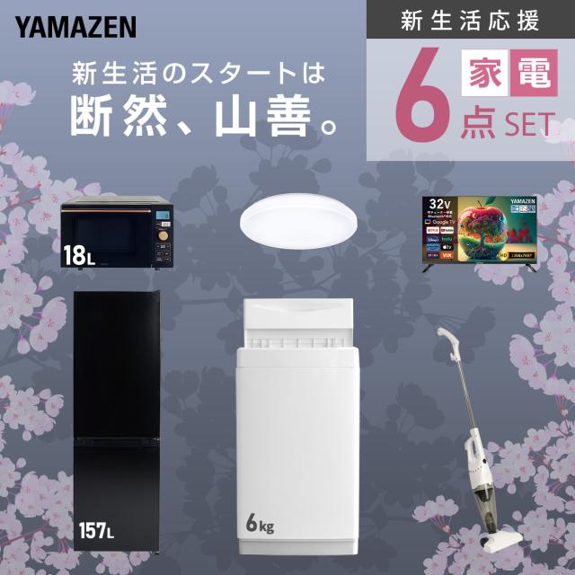 新生活家電セット 6点セット 一人暮らし (6kg洗濯機 157L冷蔵庫 オーブンレンジ シーリングライト スマートテレビ 32型 スティッククリーナー) ひとり暮らし 単身赴任新 学生 入学 おすすめ 山善 YAMAZEN【送料無料】