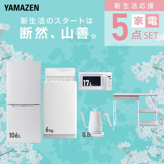 新生活家電セット 5点セット 一人暮らし (6kg洗濯機 106L冷蔵庫 電子レンジ 温調ケトル レンジラック) ひとり暮らし 単身赴任新 学生 入学 おすすめ 山善 YAMAZEN【送料無料】