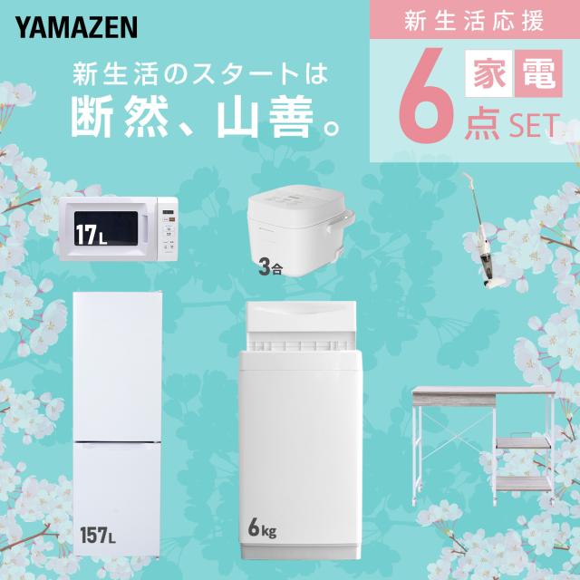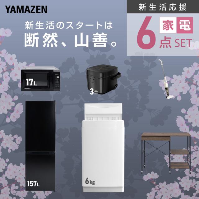 新生活家電セット 6点セット 一人暮らし (6kg洗濯機 157L冷蔵庫 電子レンジ 炊飯器 スティッククリーナー レンジラック) ひとり暮らし 単身赴任新 学生 入学 おすすめ 山善 YAMAZEN【送料無料】