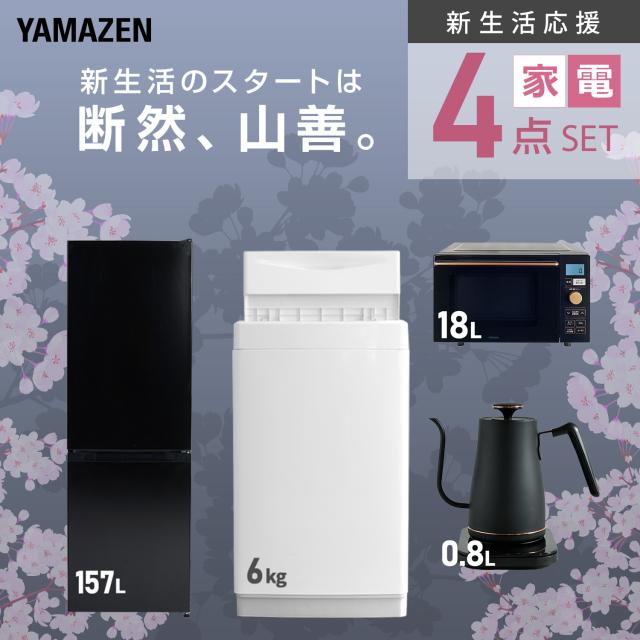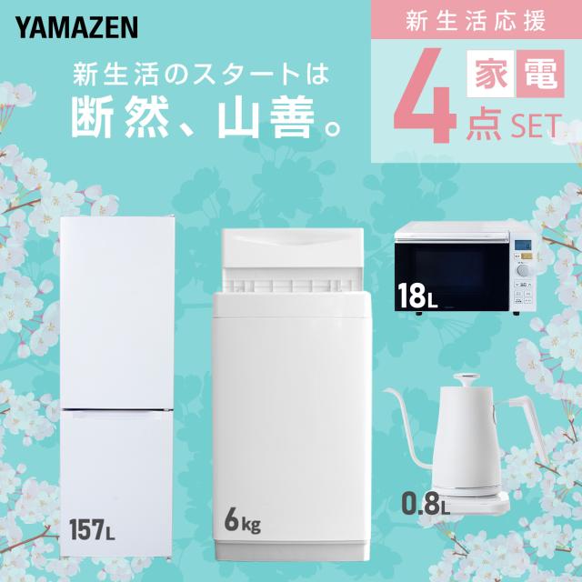 | 山善 YAMAZEN 【新生活応援セット】 家電セット 一人暮らし 新生活家電 4点セット 新品 ( 6kg洗濯機 157L冷蔵庫 オーブンレンジ 温調ケトル ) |