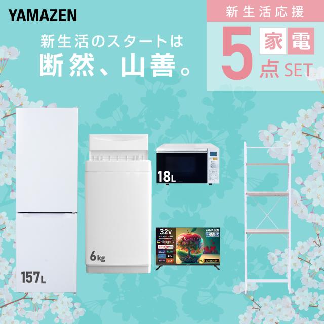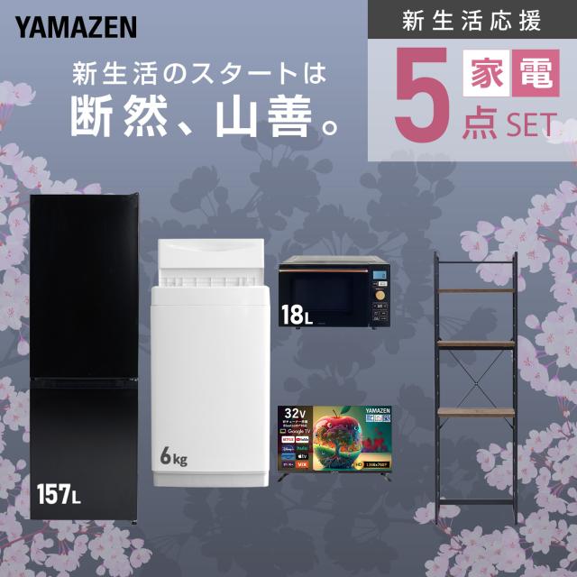 新生活家電セット 5点セット 一人暮らし (6kg洗濯機 157L冷蔵庫 オーブンレンジ スマートテレビ 32型 家電収納ラック) ひとり暮らし 単身赴任新 学生 入学 おすすめ 山善 YAMAZEN【送料無料】