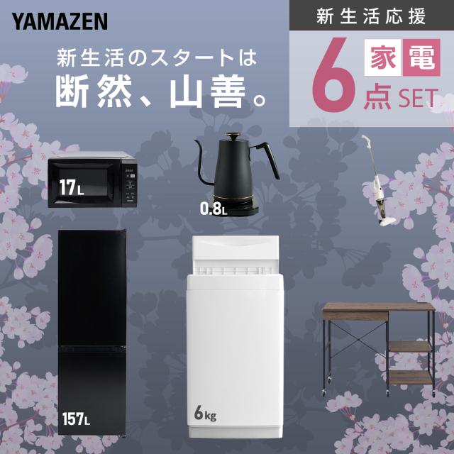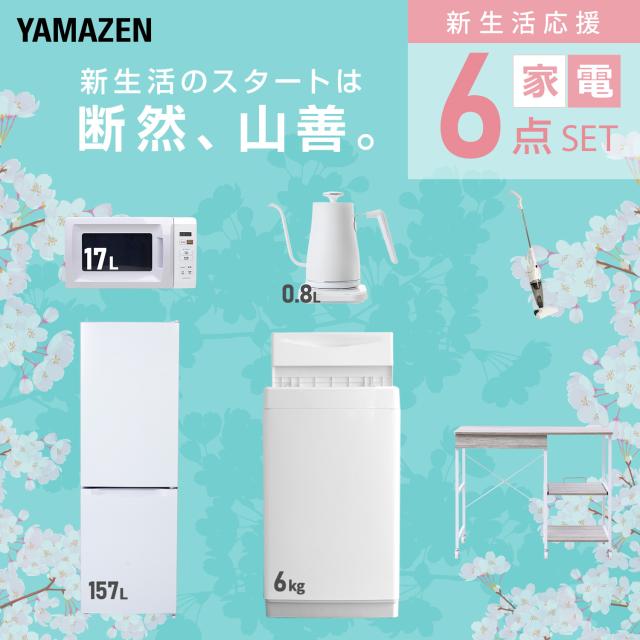 新生活家電セット 6点セット 一人暮らし (6kg洗濯機 157L冷蔵庫 電子レンジ 温調ケトル スティッククリーナー レンジラック) ひとり暮らし 単身赴任新 学生 入学 おすすめ 山善 YAMAZEN【送料無料】