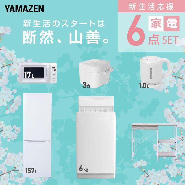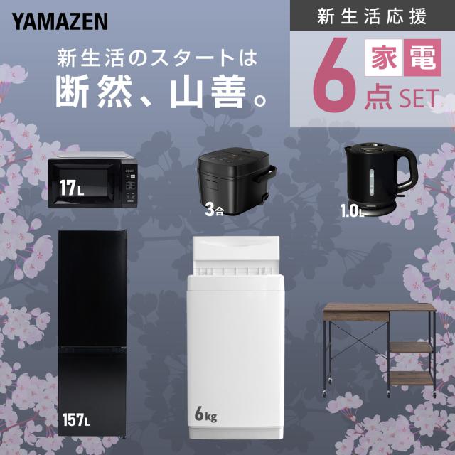 新生活家電セット 6点セット 一人暮らし (6kg洗濯機 157L冷蔵庫 電子レンジ 炊飯器 電気ケトル レンジラック) ひとり暮らし 単身赴任新 学生 入学 おすすめ 山善 YAMAZEN【送料無料】