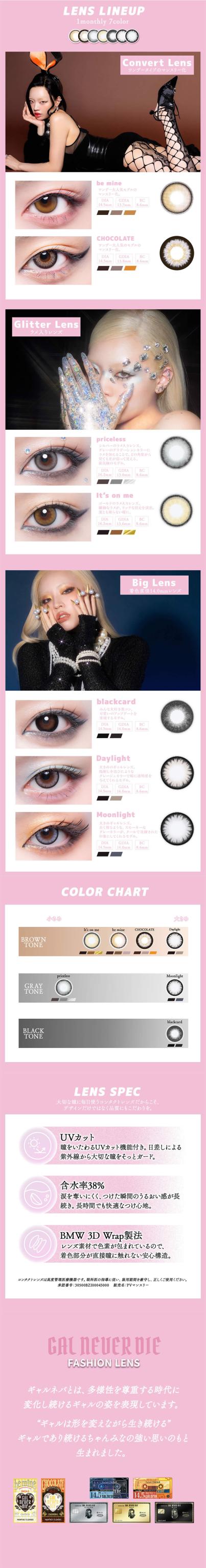 | DIA(レンズ直径) | 14.2mm(イッツオンミー、プライスレス)、14.5mm(ブラックカード) |