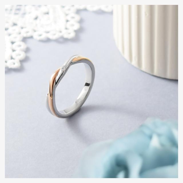 シルバーカラーとローズゴールドカラーがやさしく絡み合うコンビネーションデザイン。