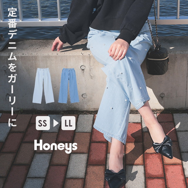 ボトムス パンツ デニム ワイドパンツ デニムパンツ 綿 コットン パールビーズ カジュアル ガーリー レディース Honeys ハニーズ パール付ワイドパンツ