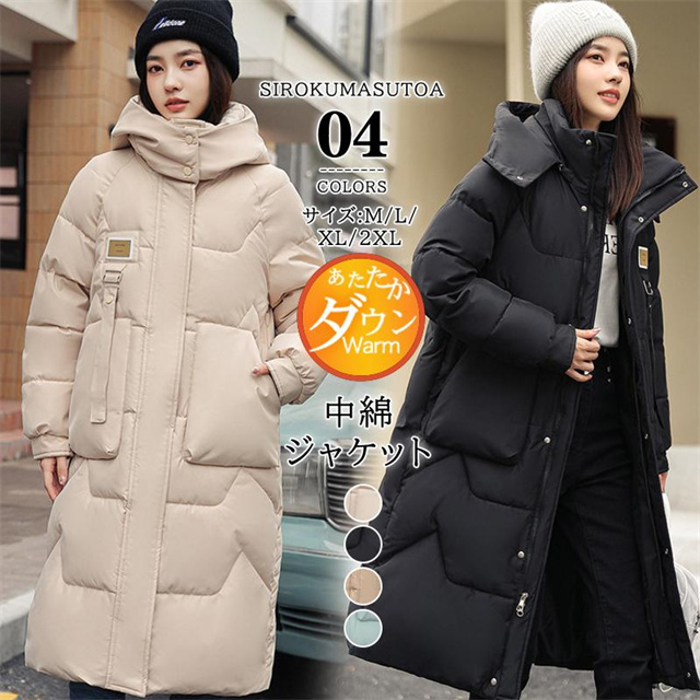 中綿コート レディース ロングコート ロング丈 ベンチコート フード付き ダウンジャケット アウター シンプル 防寒 厚手 あったか 通勤 通学 送料無料