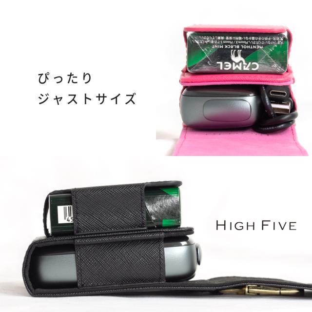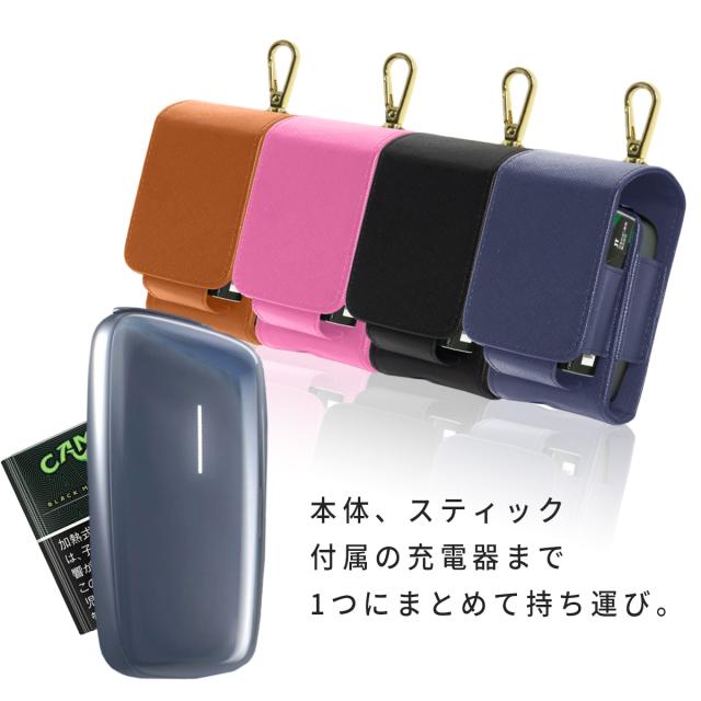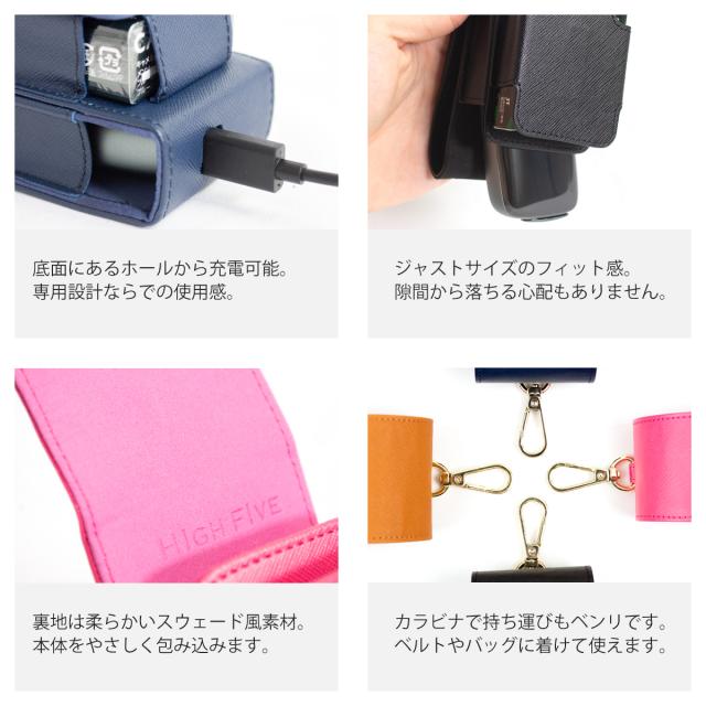 【限定500円OFFクーポン】【2,280円→1,780円】HIGH FIVE プルームXケース PloomXケース カラビナ付き カバー 新型 サフィアーノ レザー 革 ポーチ型 カバー ストラップ付 コンパクト 本体 収納 黒 紺 電子たばこ 収納ホルダー