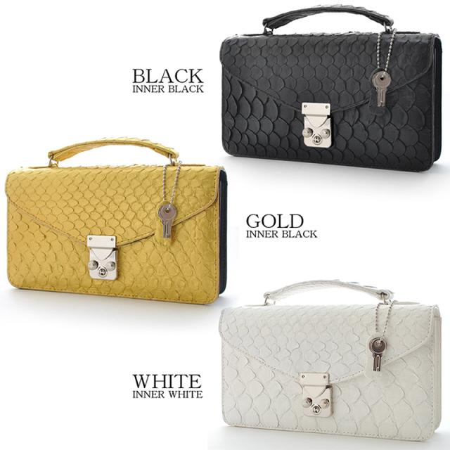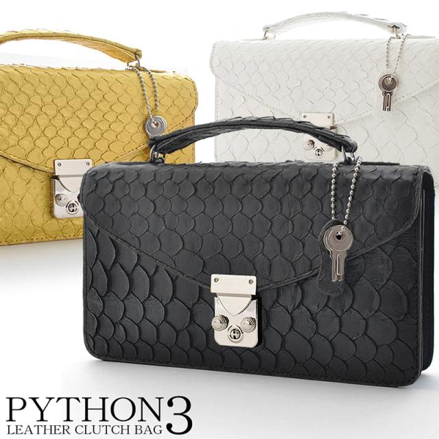 パイソンレザー セカンドバッグ メンズ 錦蛇革 バッグ クラッチバッグ ブラック ゴールド ホワイト
