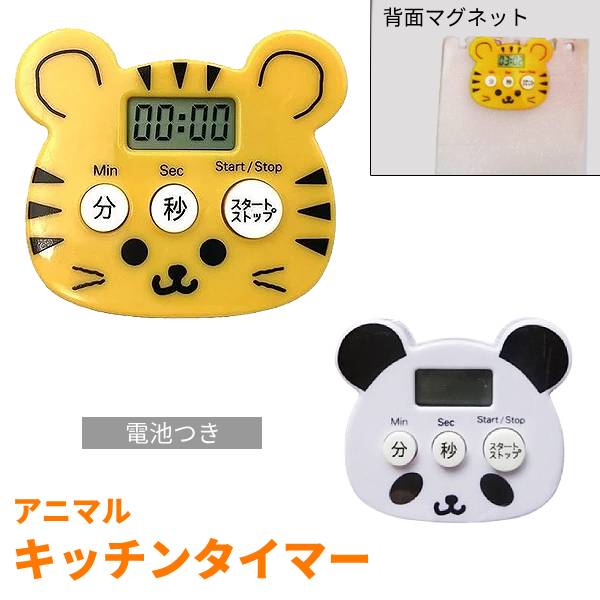 安い アニマル キッチンタイマー とら パンダ 動物 台所用品 ボタン電池入り マグネット付き 冷蔵庫 虎 タイガー かわいい くっつく 料理 タイマー 磁石