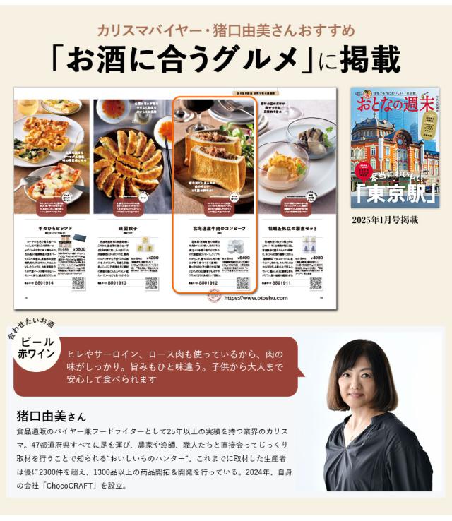 北海道・別海町産の良質な牛肉をメインに使い、ほろほろに煮込んで牛脂と塩だけで仕上げた無添加コンビーフ。シンプルだからこそ、噛むほどに肉の旨みが押し寄せてきて感嘆!脂っぽさはなくその軽やかさに驚くはず。そのまま酒肴でも、ポテサラやおにぎりの具材としても旨し。