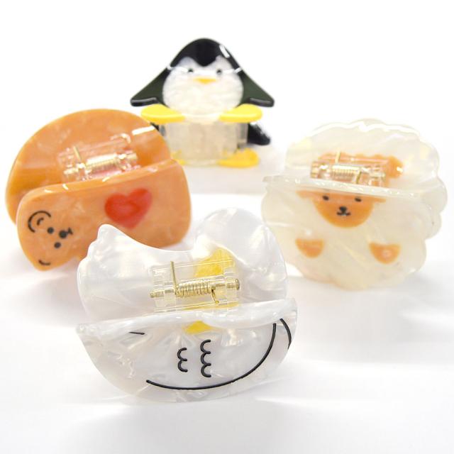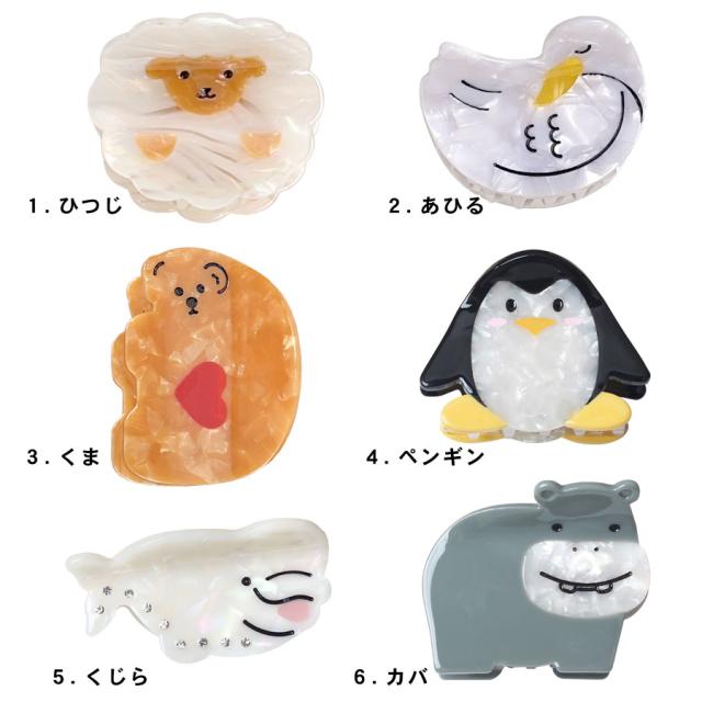 ヘアクリップ バンスクリップ アニマル 動物 ゆるかわ アセテート アセチ マーブル くま ひつじ あひる レディース ヘアアクセサリー ハーフアップ ユニーク 髪留め 髪飾り 小さめ 小ぶり ミニ ハート ベア 可愛い 送料無料 (hac326)