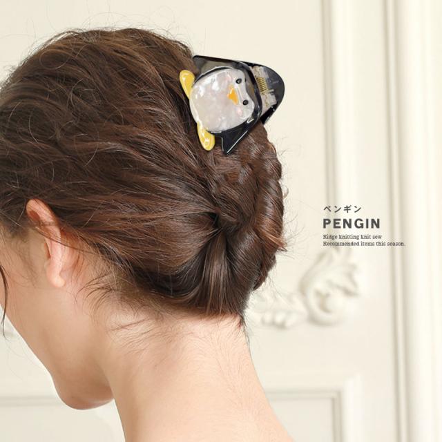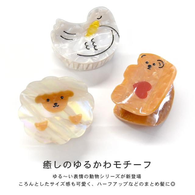 【ヘアクリップ バンスクリップ アニマル 動物 ゆるかわ アセテート アセチ マーブル くま ひつじ あひる レディース ヘアアクセサリー ハーフアップ 髪留め 髪飾り 小さめ 小ぶり ミニ ハート ベア 可愛い ユニーク モチーフ お洒落 個性派 ラウンド 丸型】