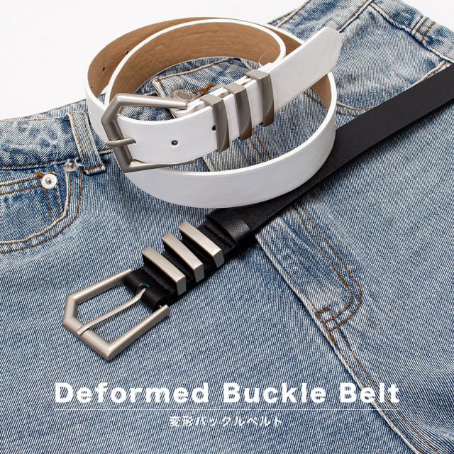 3連ループに大きめの変形バックルがアクセントになった幅広ベルト。