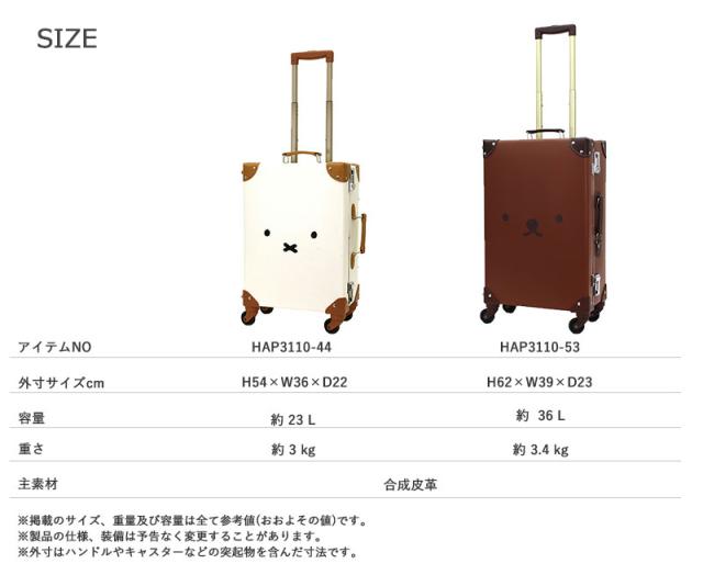 機内持ち込み シフレ siffer ミッフィー ボリス スーツケース Sサイズ 23L HAP3110-44 ハピタス トランク 合成皮革 miffy