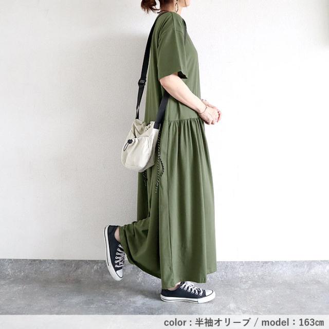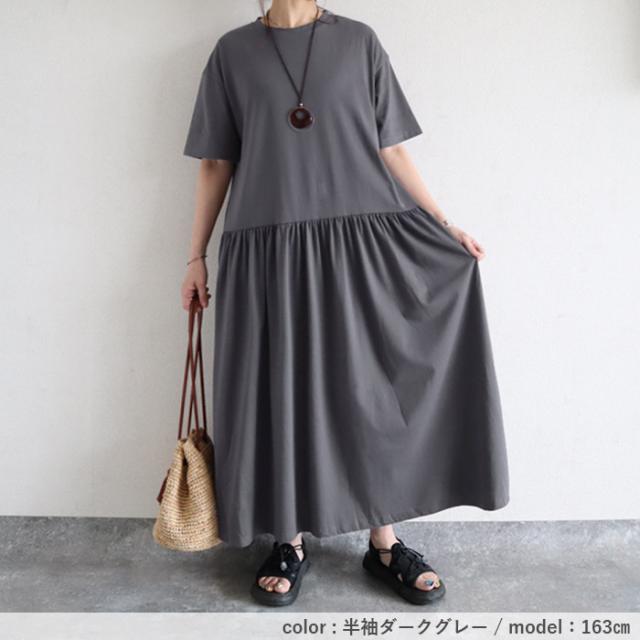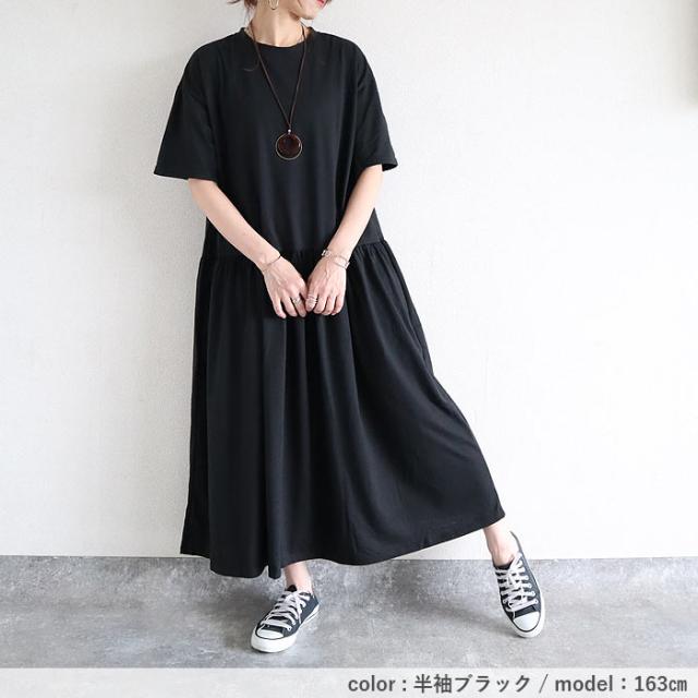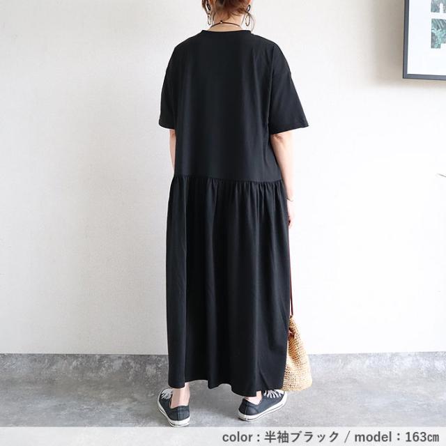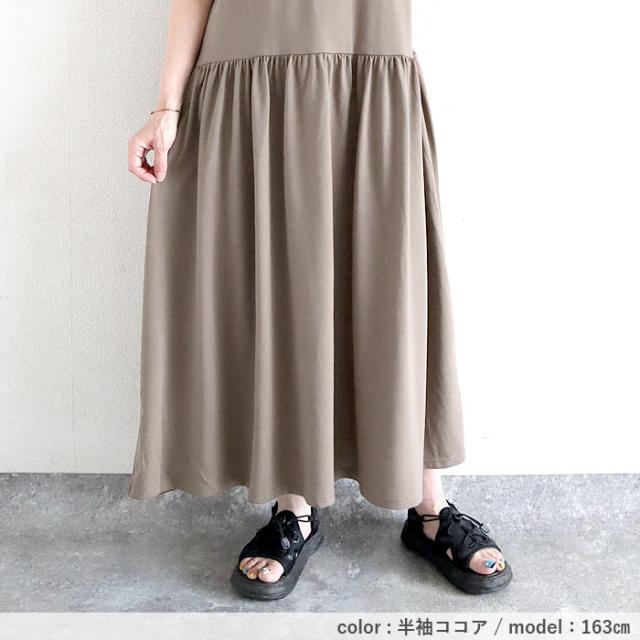 ワンピース フレア 半袖 ロング丈 切り替え カジュアル ボリュームスカート レディース シンプル レイヤード 黒 夏 きれいめ カジュアル 40代 30代 50代 60代 大きいサイズ ゆったり 大人 カジュアル かわいい SALE セール uricca ウリッカ うりっか