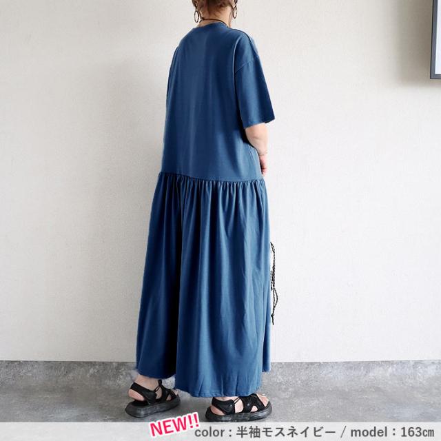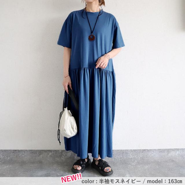 春新作 ワンピース ロング 切り替え 半袖 フレア ボリュームスカート レディース [郵3]^w699-1^ ★