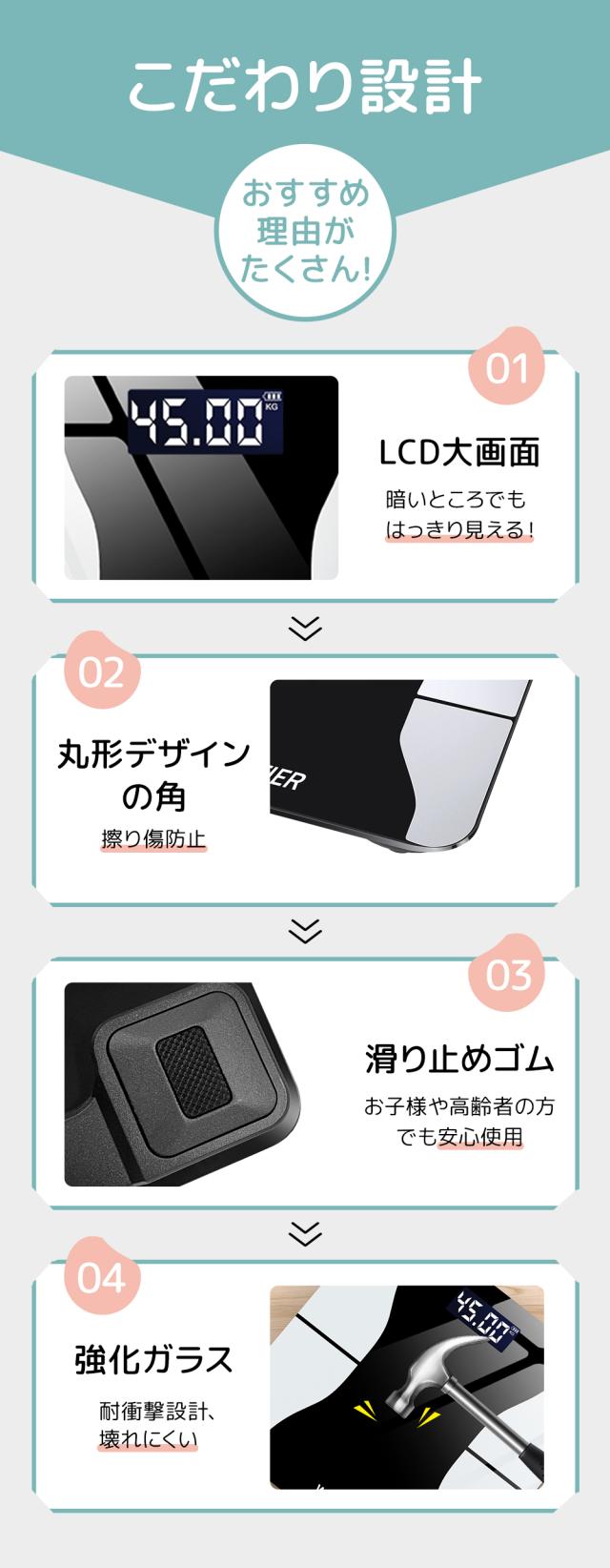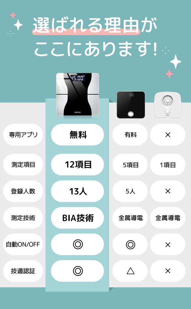 体重計 体脂肪計 体組成計 スマホ連動 Bluetooth接続 専用アプリ 体重計 内臓脂肪 体重など多項指標 高精度 ヘルスメーター 乗るだけ 電源自動ON/OFF