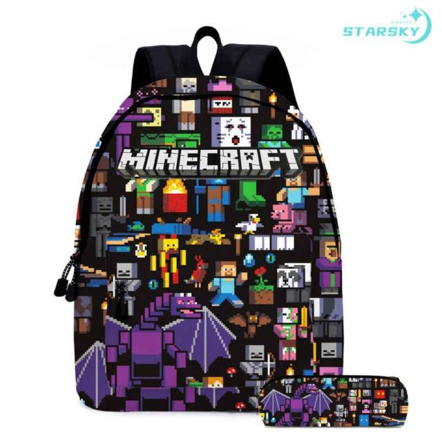 マインクラフト リュック 2点セット 鞄と筆箱 子供用 リュックサック キッズ 学生 外出 軽量 通学 防水 遠足 耐久性 大容量 プレゼント
