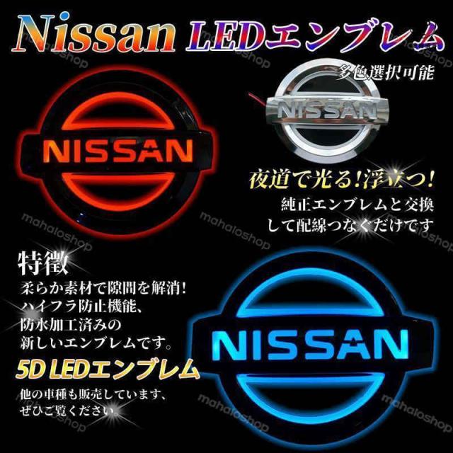 日産 NISSAN 5D LEDエンブレム 交換式 10.6cm×9cm 11.7×10cm フロント用 リア用 ライト カラー選択 自動車 外装用品 おしゃれ エンブレム