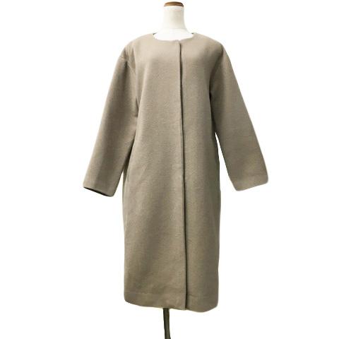 【中古】テチチ Te chichi コート ノーカラー 無地 ウール 長袖 フリー ベージュ レディース