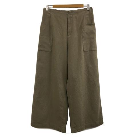 【中古】ルスーク Le souk パンツ ワイド ロング ウエストゴム リネン混 無地 11 緑 グリーン レディース