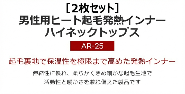 2枚セット 送料無料 ARMEDES アルメデス コンプレッション アンダーシャツ インナー 発熱 防寒 保温 長袖 ハイネック 起毛 メンズ M-2XL 全3色 秋 冬 AR25