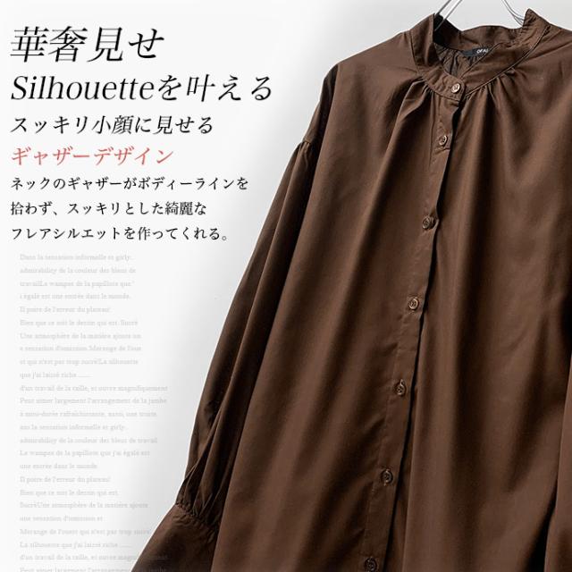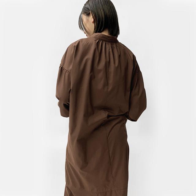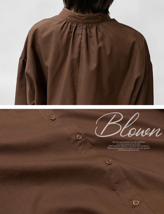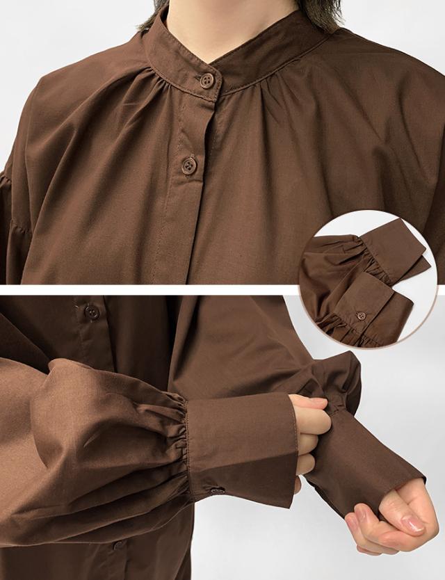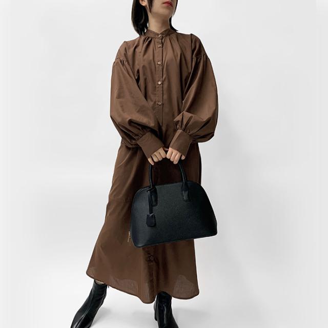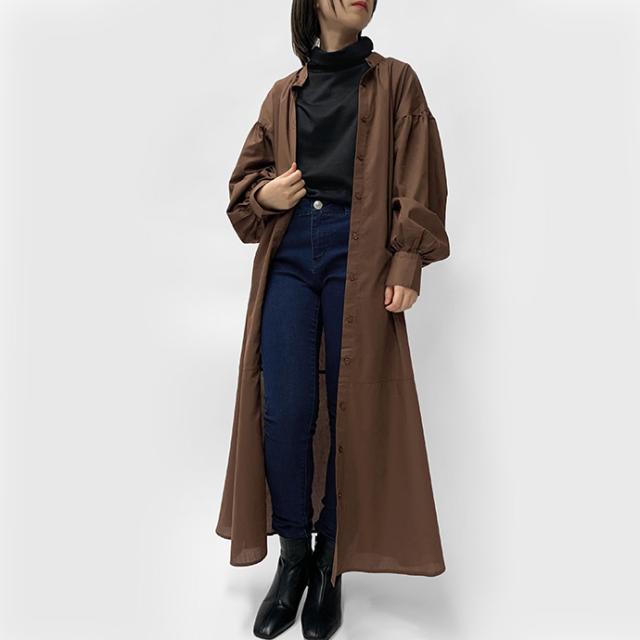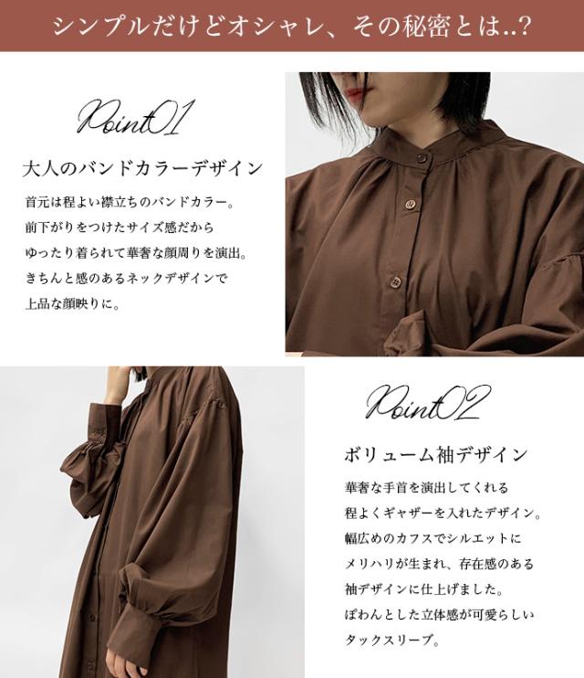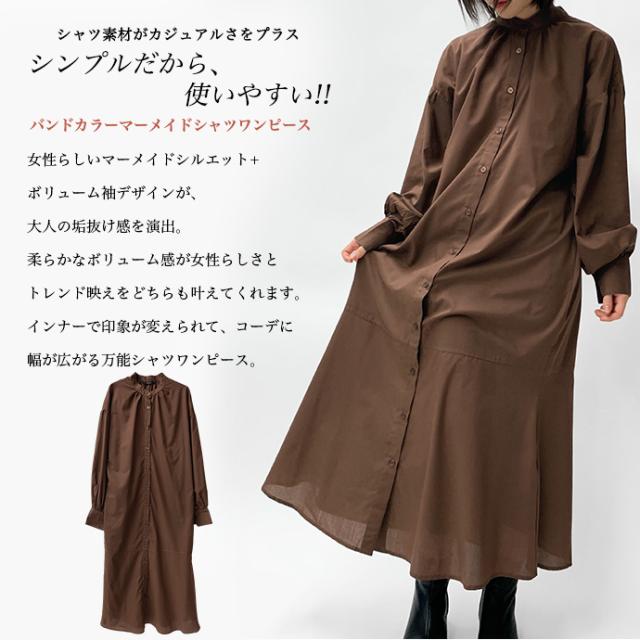ワンピース シャツワンピース ロング丈 ロングシャツ 羽織り 長袖 マーメイド ぽわん袖 パフスリーブ バンドカラー シャツワンピ ゆったり 体型カバー 無地 前開き 前ボタン フロントボタン レディース 送料無料