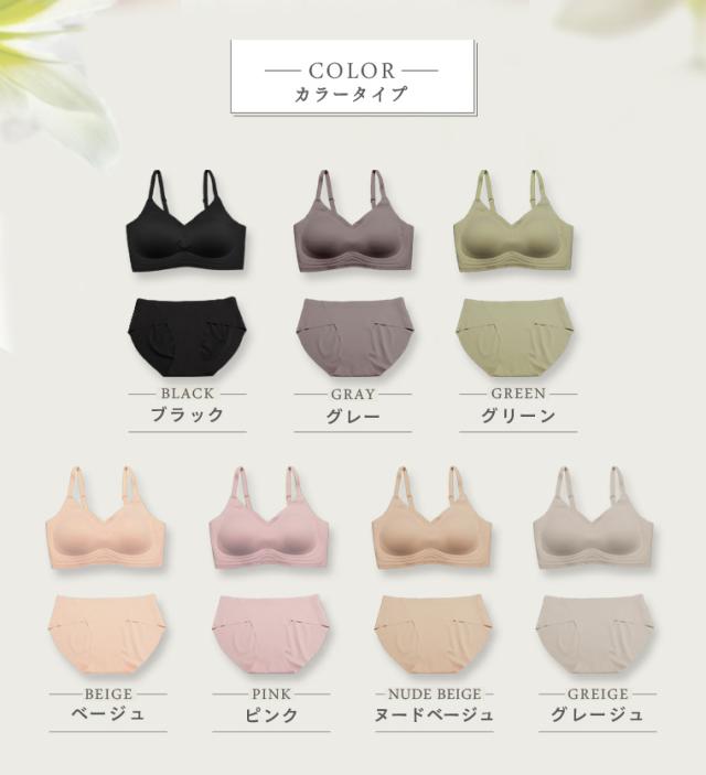 | カラー | ブラック グレー グリーン ベージュ ピンク ヌードベージュ グレージュ ※ブラとショーツは同色の組み合わせです。 |